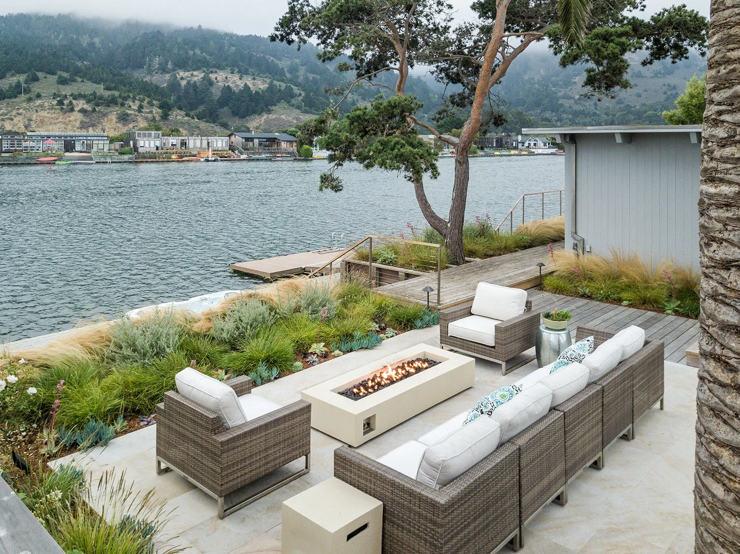 We are excited to announce the completion of a recent project in Stinson Beach! This lagoon-facing property provides a tranquil escape for the owners and has plenty of amenities to enjoy, including a cozy fire pit terrace and waterfront spa. The design includes a concrete fire table, bringing warmth to the sandstone patio, and a stately Canary Island Palm, thoughtfully placed for impact and afternoon shade. The ping-pong deck is fun for the kids and the new floating dock allows for convenient access to the lagoon for water activities. We truly enjoyed collaborating with the owners, architects, and designers on such a special project!